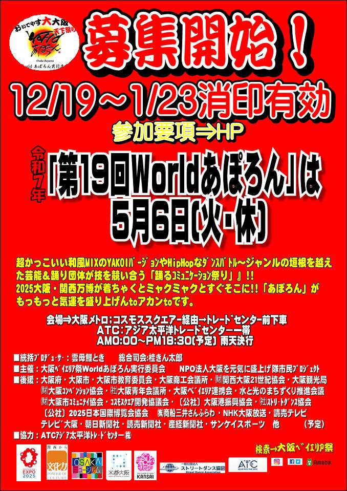 お隣り校区内(笑)でもあり、万博会場に一番近い「咲洲」で開催のWorldあぽろんは、来年(2025)第19回〜さ来年(2026)は早いもので「20周年」となります。