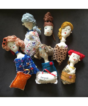 それぞれ違った表情のお顔をひとつ選んで、色んな毛糸、布、レース等を使って、ヘアスタイルやお洋服、アクセサリー等でドレスアップ。