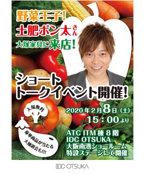 IDC大塚家具大阪南港ショールーム内特設ステージにて、野菜王子こと、土肥ポン太さんのトークショーを開催。