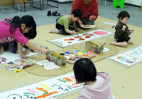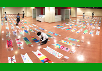 皆さんに参加していただいた「ボクのこいのぼりをつくろう」。 子どもたちが1メートル以上ある無地の生地に自由に絵を描いてくれました。