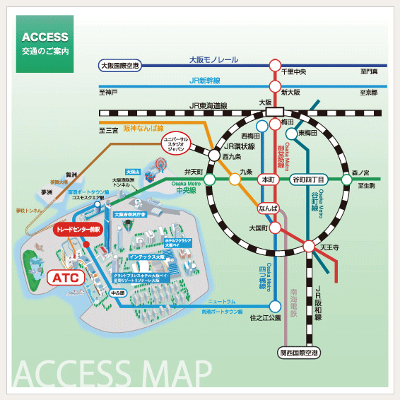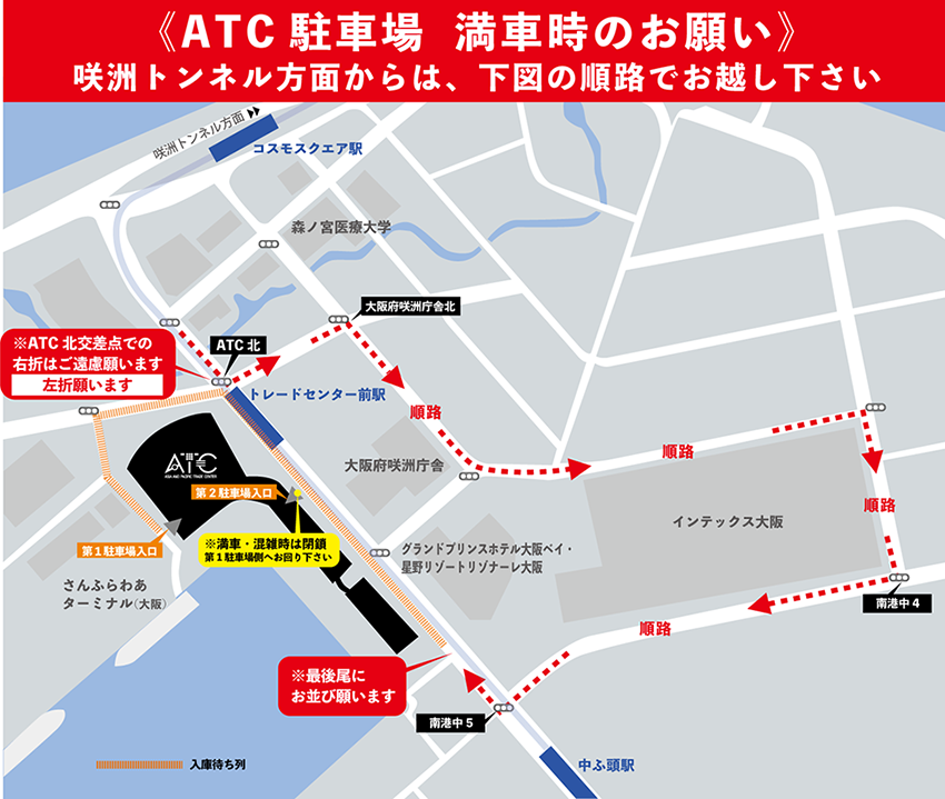 - ※堺・和歌山方面よりお越しのお客様は南港南出口にて高速道路をお降りください。南港北出入口では南方面からの降り口がございませんので、ご注意ください。