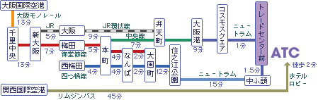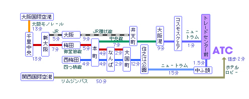 Osaka Metro中央線「本町」からコスモスクエア経由で約18分